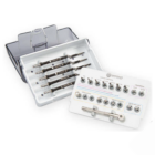 accessible compartments. Composed of seven drills for preparation, four manual contra-angle drivers, surgical ratchet, and Black Ruby (optional).