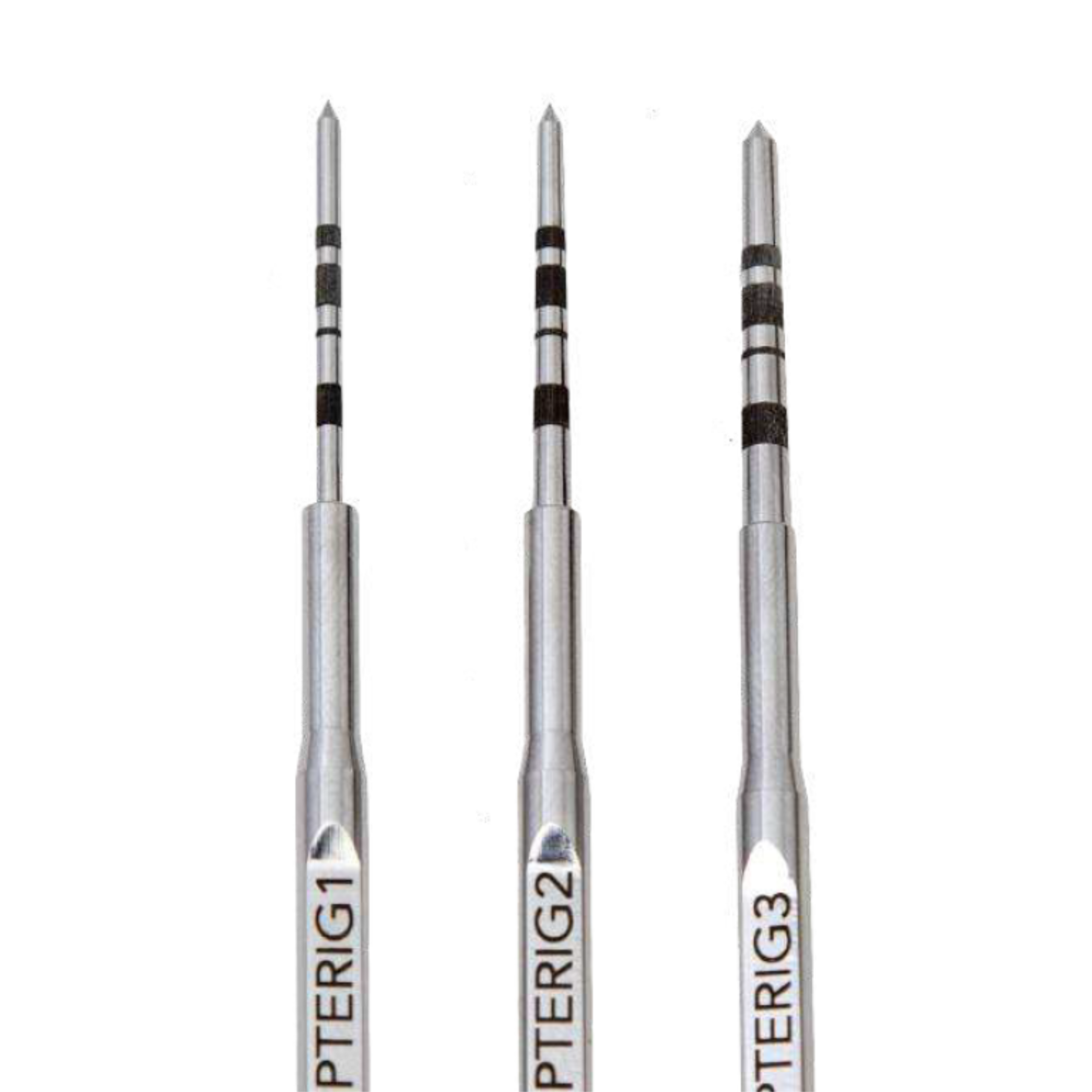Kit for pterygoid surgery. Composed of three contra-angle and manual drivers, a torque wrench, two pterygoid drills, two pins. Straight osteotomes.